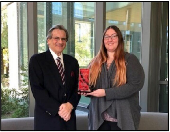 Kendra Ashenfelder, after being presented with the 2021 Dr. Robert A. Roosa Regulatory Compliance Award by Jim Fenaroli, President, Source Center, Inc.